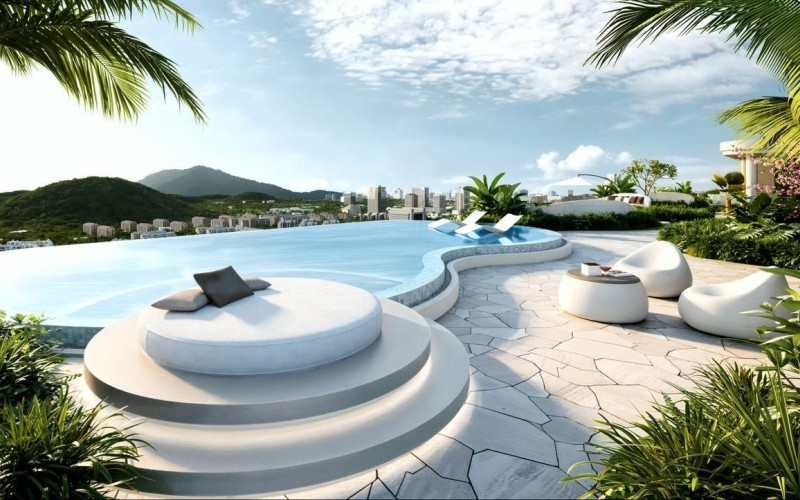 Two heated infinity swimming pools