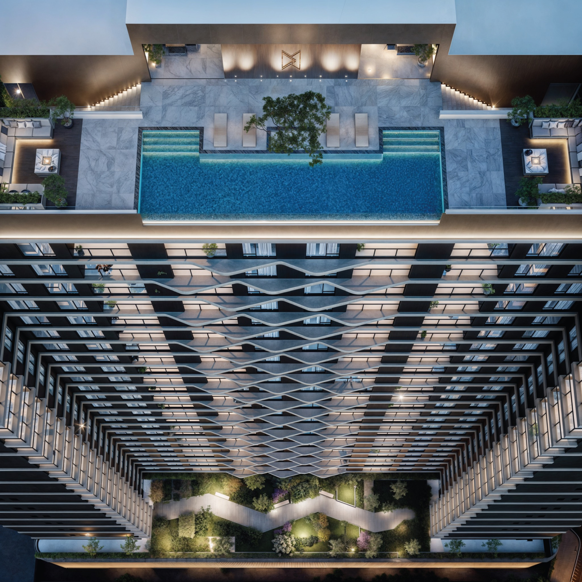 Zen garden and landscaped spaces