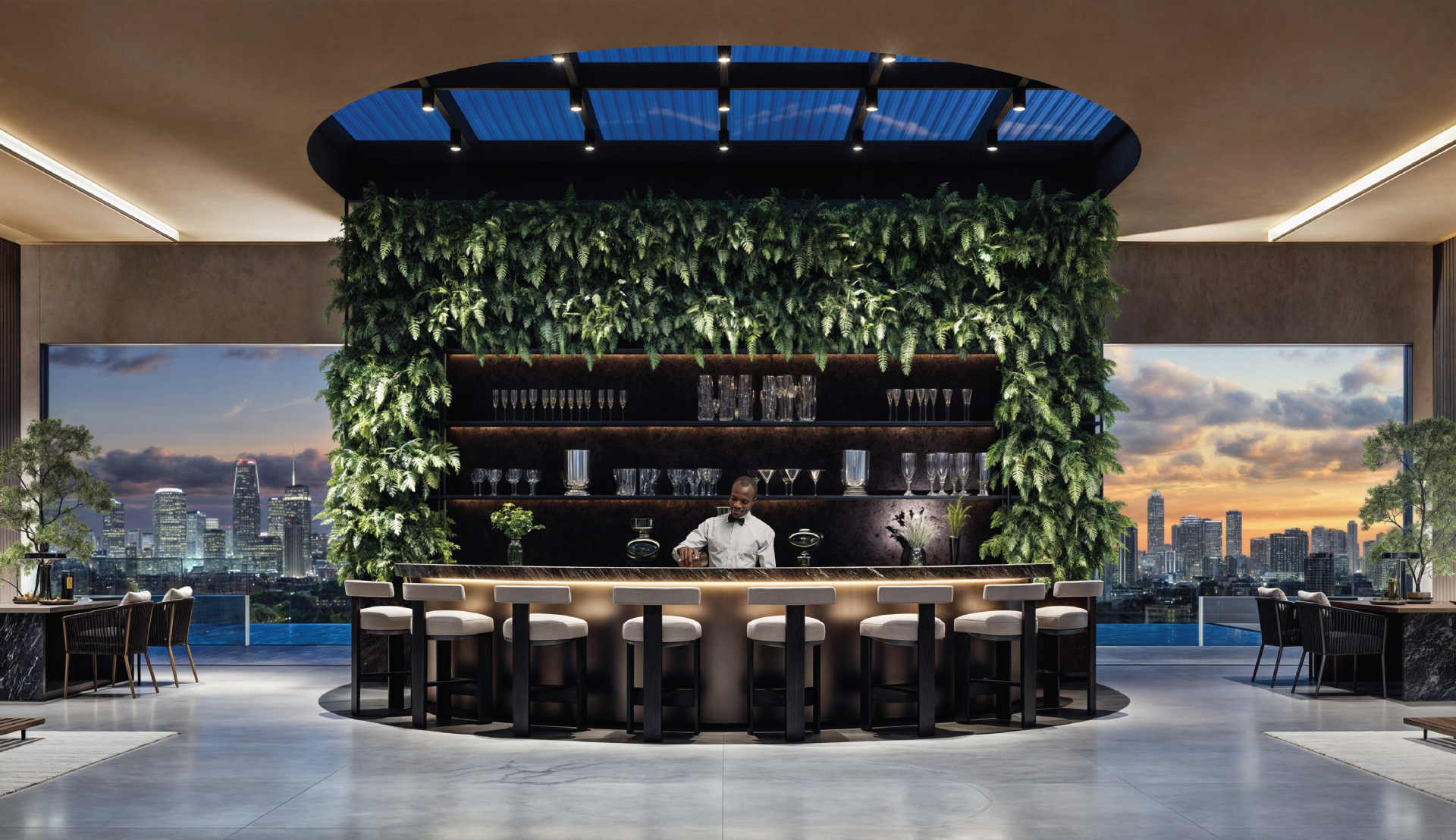 Infinity pool with skyline views